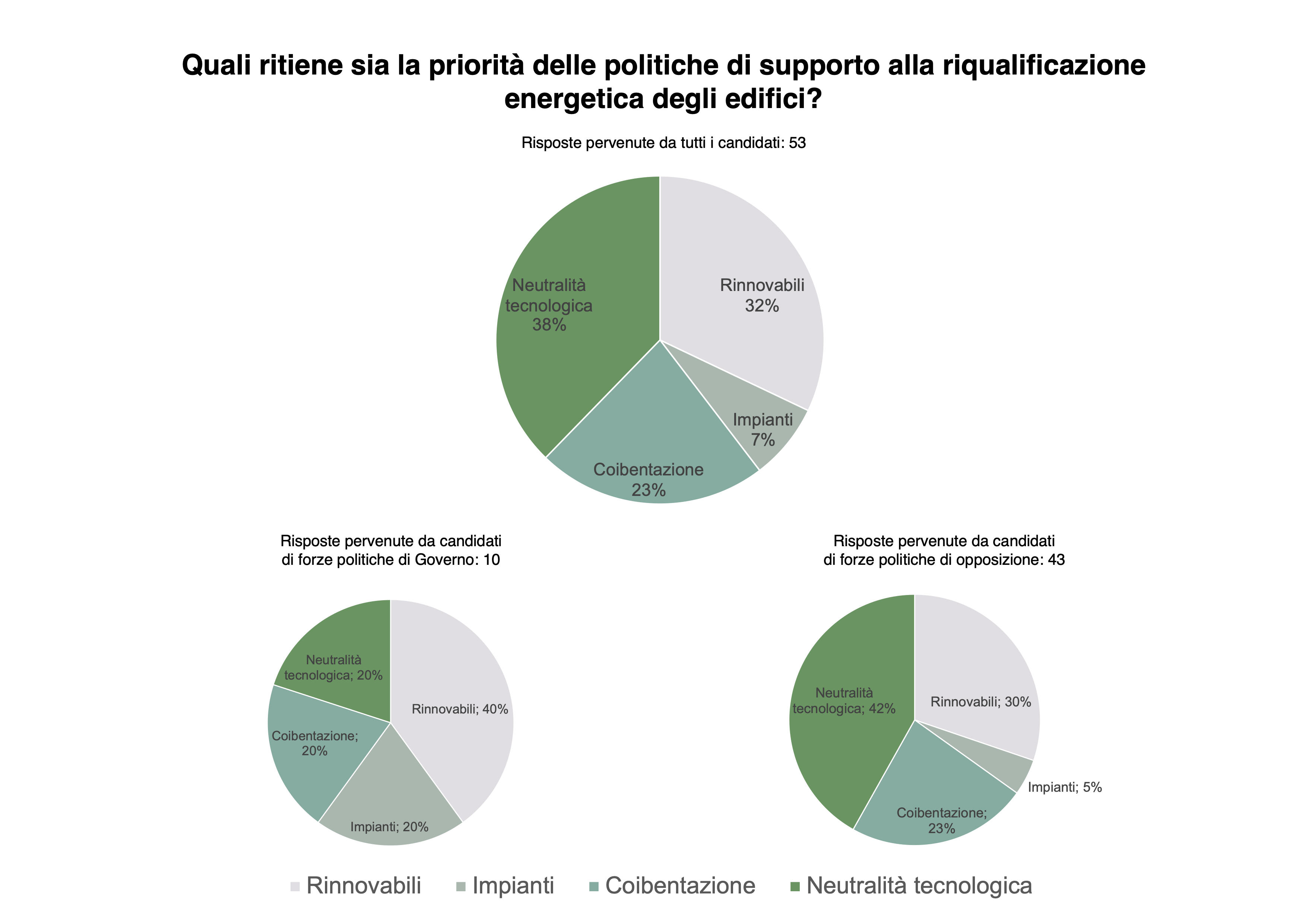 Ai candidati è stato chiesto se fossero d’accordo in merito all’esistenza di un legame tra le riqualificazioni edilizie e ognuno dei precedenti benefici. Sono state proposte quattro possibili risposte: